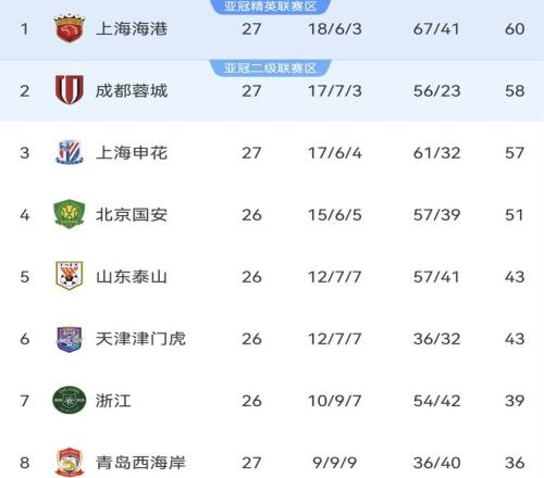 北京时间10月17日晚,中超倒数第4轮的比赛开打,联赛排名前3的球队全部出战。其中海港在客场对阵海牛,蓉城主场踢梅州,申花同样做客青岛,对手是西海岸。结果,申花2-1取胜!蓉城海港也赢了,中超最新积分:2队争冠+降级4选2。