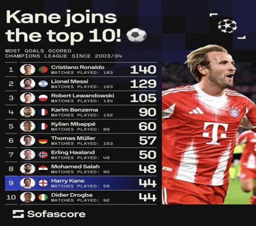 在该榜单的后半区(6–10名)里,凯恩以场均0.75球、场均0.19助攻的效率仅次于哈兰德,且样本量更大,明显优于萨拉赫、穆勒与德罗巴。他的射门选择干净、禁区背身做球与二次前插稳定,点球把握也出众,因此在有限出场里把效率拉到了顶级档。