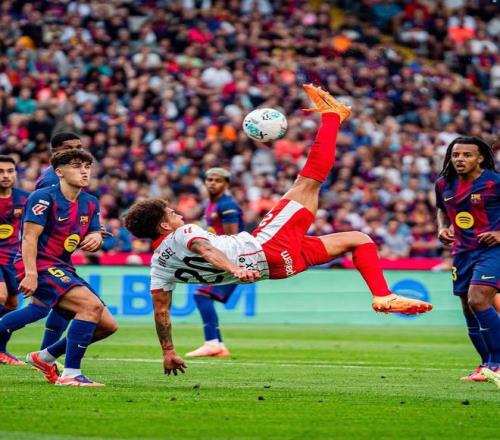 雷速体育10月19日报道宣称 本轮西甲,维特塞尔在对巴萨的比赛中打入漂亮的倒钩进球,一度将比分追平,但最终赫罗纳还是1-2输给了巴萨。