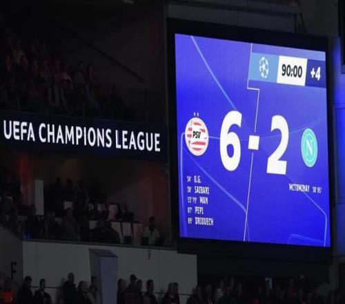 唯一的例外是意甲卫冕冠军那不勒斯,客场2比6惨败埃因霍温,是2015年罗马1比6巴萨以来,意甲首支欧冠单场失6球的球队。那不勒斯追平了此前意甲在欧冠小组赛单场总进球数纪录(勒沃库森4比4罗马,2014/15赛季),这也是那不勒斯队史在欧冠单场失球最多、净失球双项最多的耻辱纪录。