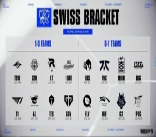 体育资讯10月15日报道宣称 S15瑞士轮第二轮抽签仪式正在进行中,明天将继续迎来8场Bo1对决;1-0组别打1-0组别,0-1组别打0-1组别。